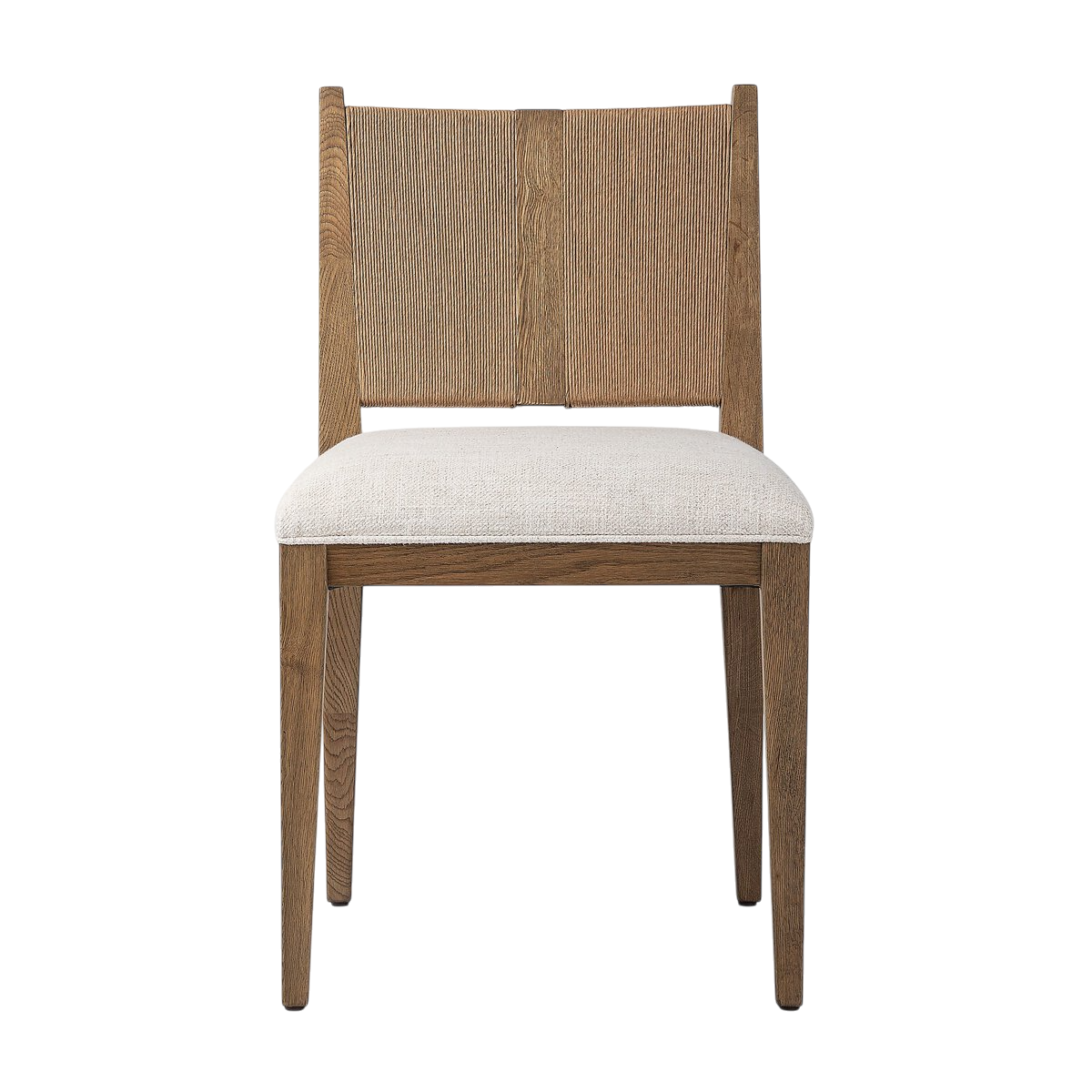 La chaise de cuisine SELENE de Four Hands se distingue par l’utilisation de matériaux uniques et une esthétique à la fois naturelle et raffinée. Son dossier, parfaitement incliné, est réalisé en corde de papier tressée et en chêne vieilli, créant un look organique, texturé et chaleureux. L’assise aux lignes carrées épurées est recouverte d’un tissu performance, idéal pour la salle à manger au quotidien.