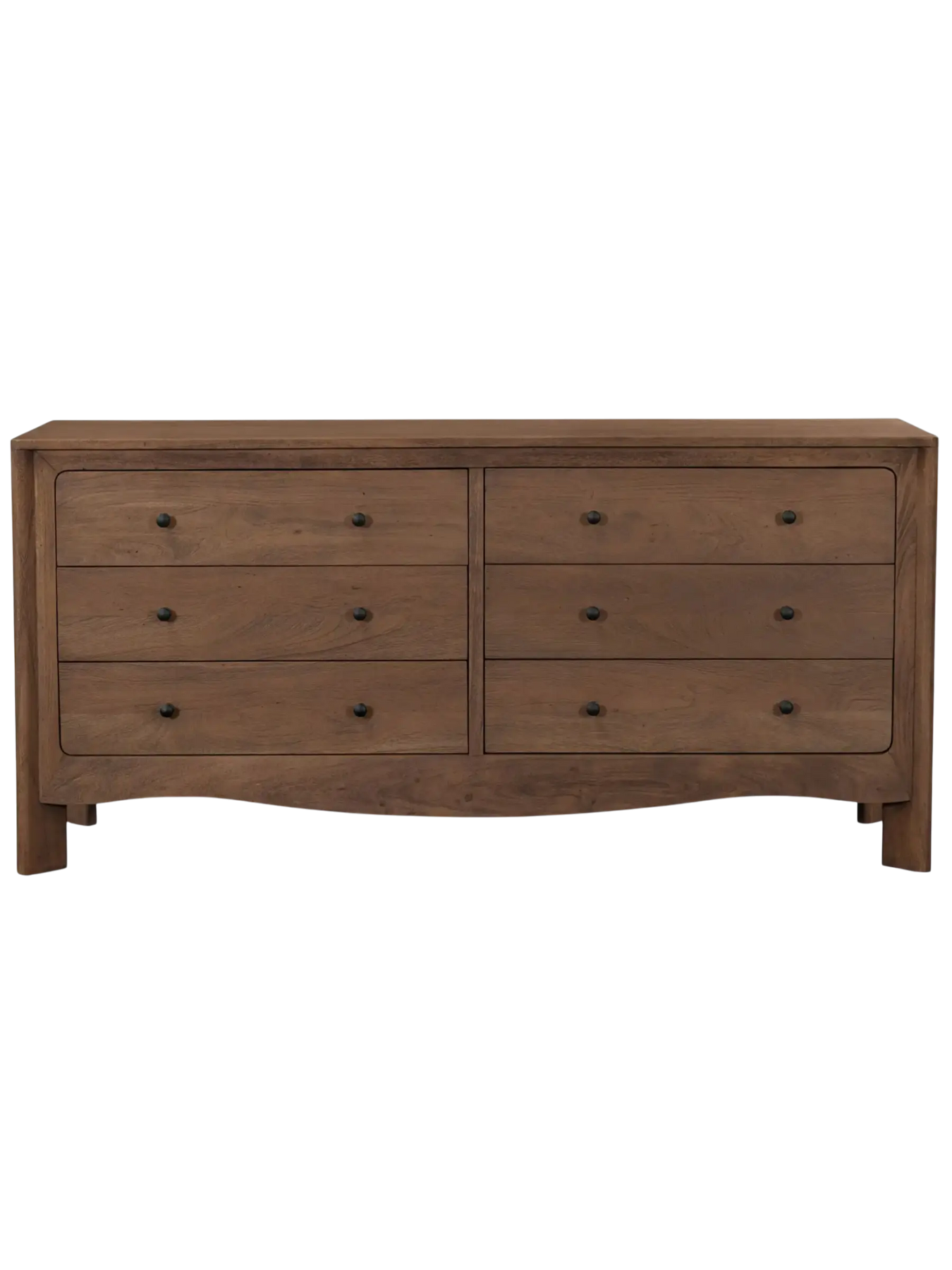 Quand la courbe rencontre la structure. La commode Mabel se distingue par ses détails sculpturaux parfaitement maîtrisés. Sa base courbée évoque subtilement les formes traditionnelles, tandis que ses pieds diagonaux inversés apportent légèreté et une touche résolument moderne.