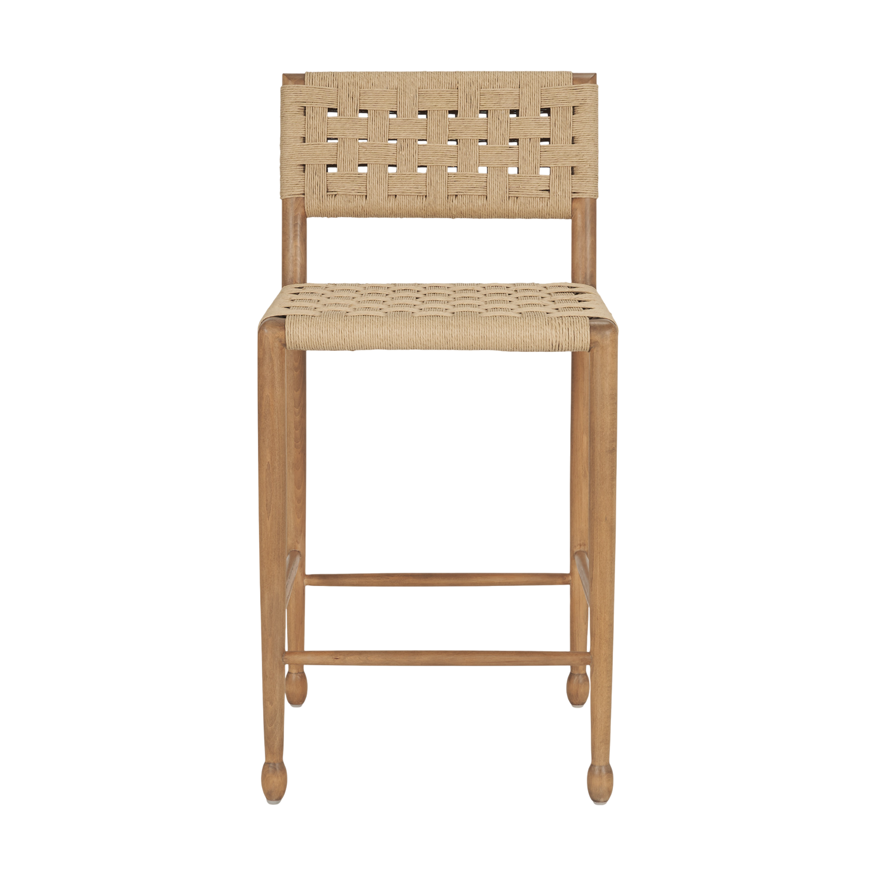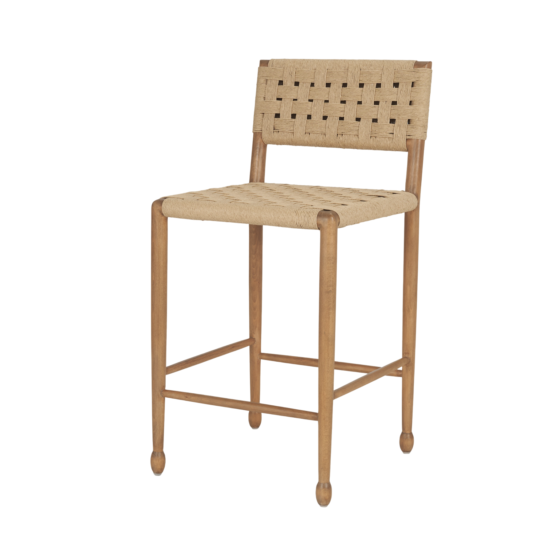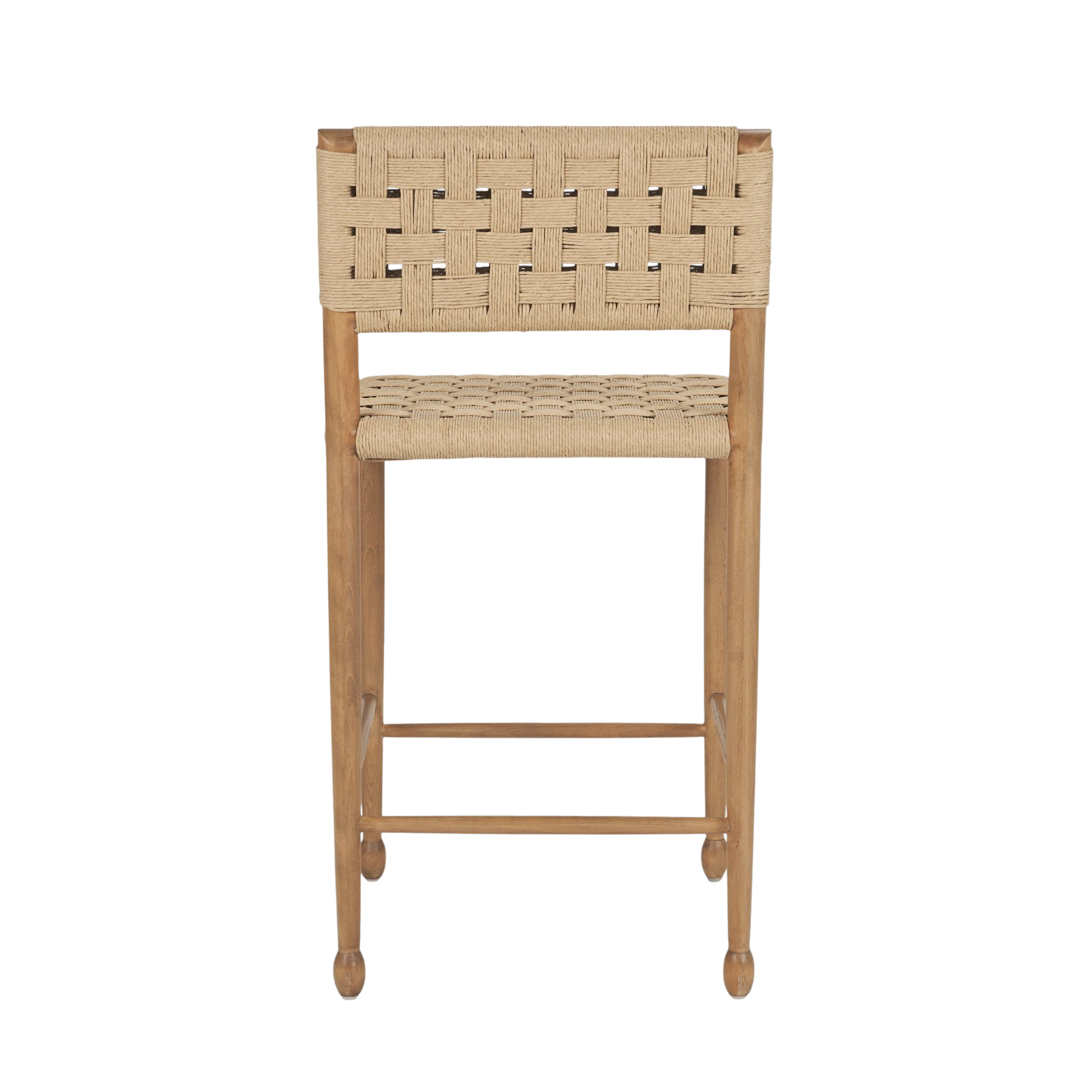 Le tabouret de comptoir Brinley est fabriqué à partir de corde de papier naturelle durable. Il présente une assise et un dossier à double tressage, reposant sur une structure en bois brun robuste, alliant solidité, confort et élégance intemporelle.