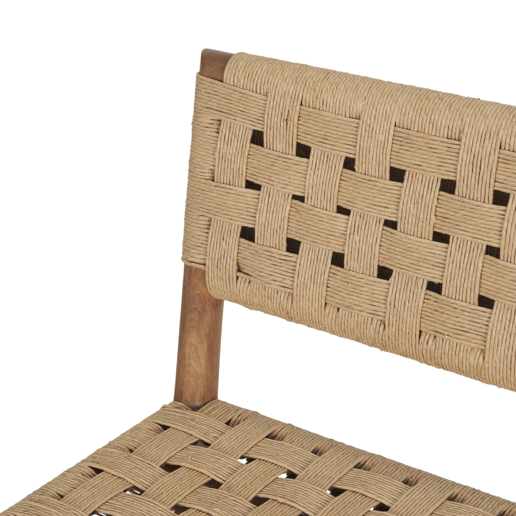 Assise et dossier en corde de papier, avec structure en bois brun moyen.