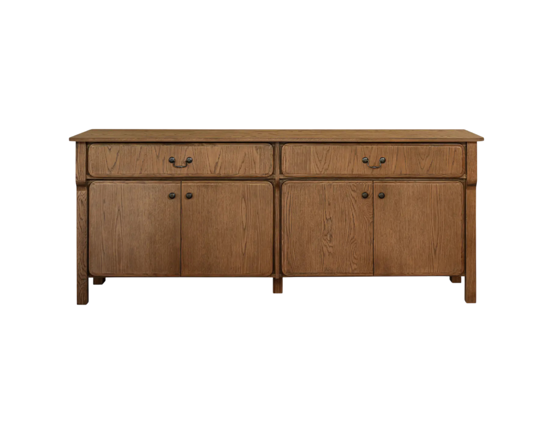 Le Hillstone se distingue par une silhouette épurée : plateau en léger surplomb, pieds galbés et arêtes adoucies pour une allure fluide et élégante. Ses deux tiroirs et quatre portes offrent un rangement généreux, tandis que les poignées et boutons raffinés signent une finition soignée. La teinte brun moyen au brossage texturé met en valeur le veinage du bois et apporte chaleur et caractère. Une pièce à la fois esthétique et fonctionnelle, parfaite pour la salle à manger, l’entrée ou le salon.