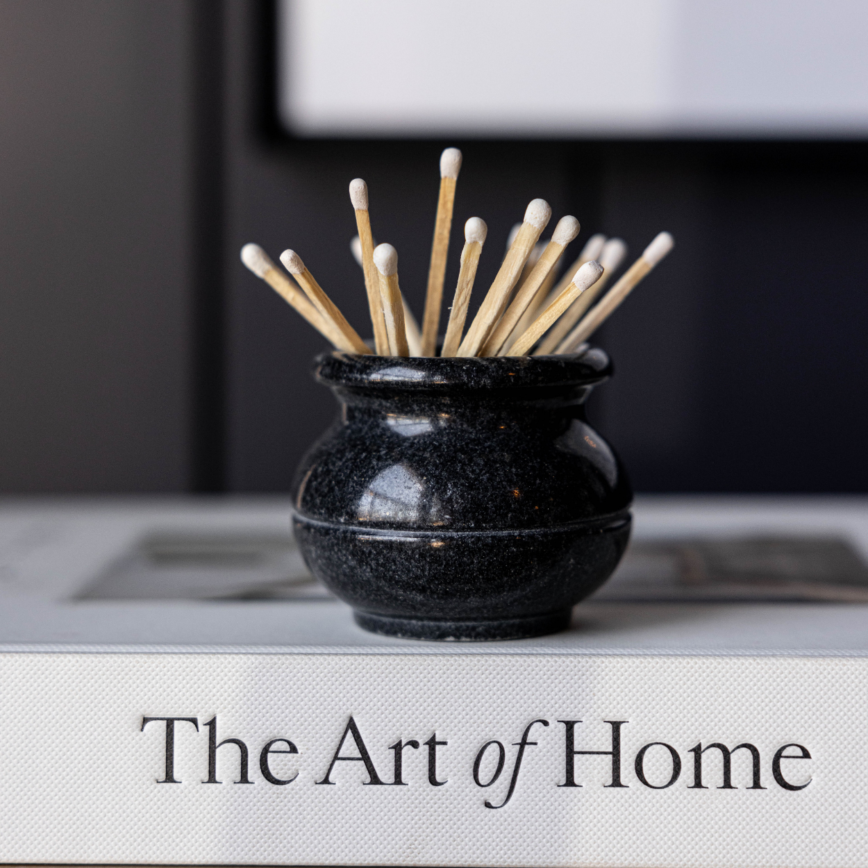 Black marble match holder