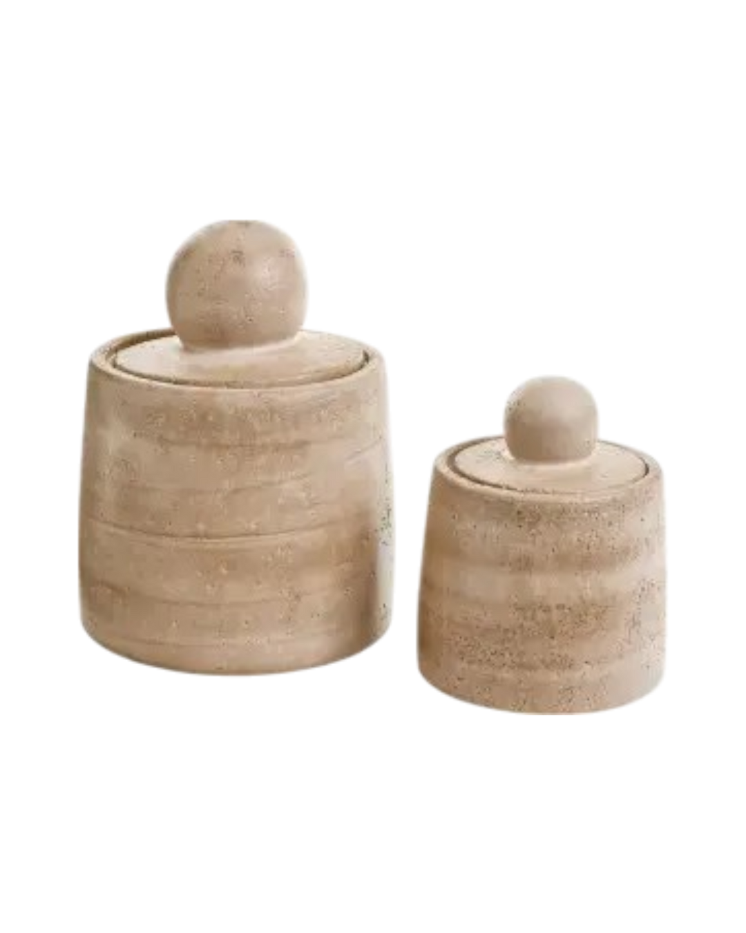 Petit contenant en ciment avec finition effet travertin beige. Parfait pour organiser vos objets du quotidien avec une touche naturelle et texturée.